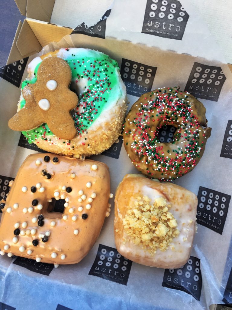 It’s beginning to taste a lot like Christmas and Astro Doughnuts is celebrating the holidays in a really big way. Astro is known for their tasty and creative flavored doughnuts and they’re also known for their crispy, not greasy, perfectly seasoned fried chicken. So if you’re looking for that perfect gift for the person who has everything, or the person (which would be everyone) that loves fried chicken and warm fluffy doughnuts, how about some good ole American comfort food all wrapped up in a cute holiday box?