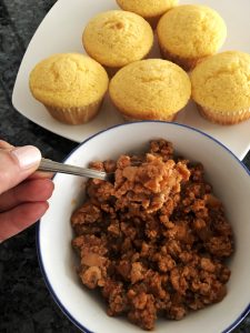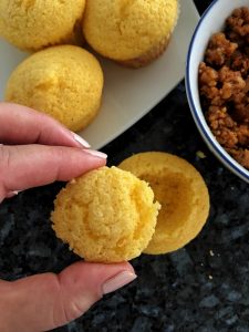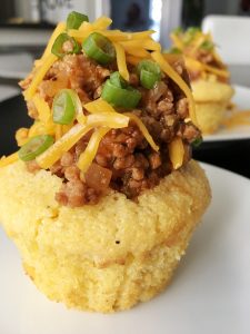The cupcake size is great if you want to serve 2-3 corny cakes per person but after testing and exceeding the appropriate portion amount hahaha, I would recommend using a muffin tin and making one big muffin filled corny cake per person. These corny cakes are easy to make and you can always play with ingredients for the sloppy joe mix. I like incorporating Asian flavors wherever I can and that’s not just because I’m half Vietnamese but I have a fridge and pantry full of spicy sweet sauces, so I used hoisin sauce mixed with some of the ketchup to make the sloppy joe sauce. Again, play with your food and experiment with different flavors. The only thing that can go wrong is you have to make another batch.