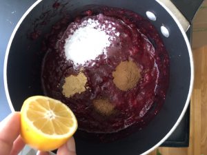 - Add the sugar, spices and lemon and stir together. Simmer on the stove for a few more minutes so all the flavors can fully combine.