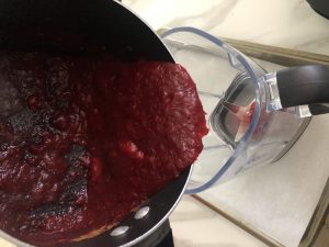- Line a baking sheet with parchment paper and spread the cranberry mix out evenly.