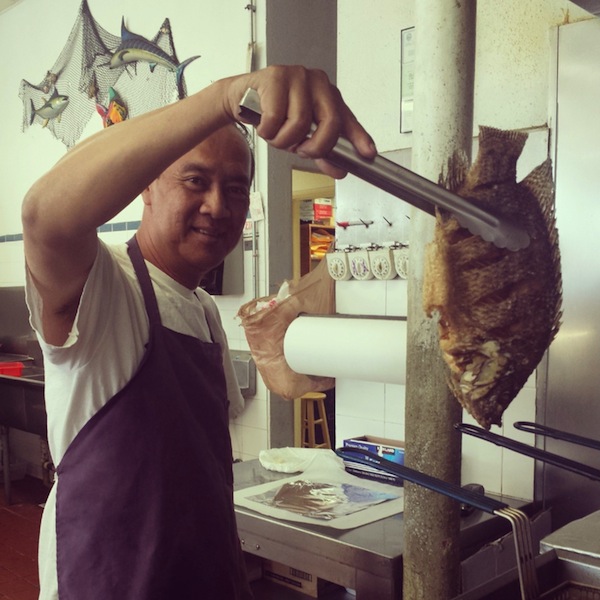 Cooking the entire fish makes for such a pretty presentation. Most of the time when I’m in the area, we’ll grab a fish, then walk across the street and grab some steamed rice and sauces from the Vietnamese restaurant and chow down.