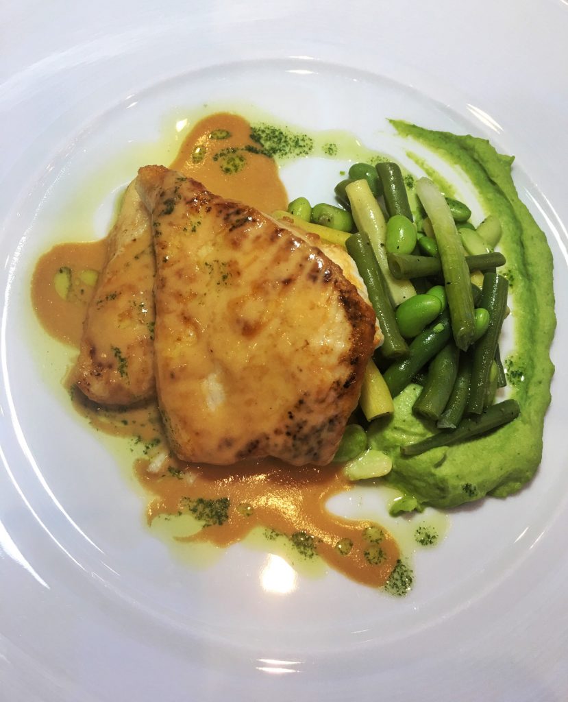 Saute of Korean Flatfish with heirloom pole beans, doenjang tarragon coulis