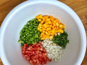 - Rough chop the cilantro and gently combine into the mango hatch mixture.