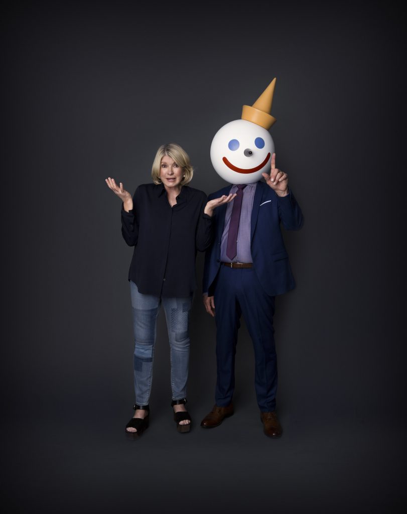Martha Stewart joins fast food icon Jack from Jack In The Box in their latest commercial to promote Jacks newest creation, an Asian chicken sandwich. Will there be drama? Oh yeah! And you can watch all the drama unfold now, during the Patriot versus Eagles Superbowl this weekend and afterward.