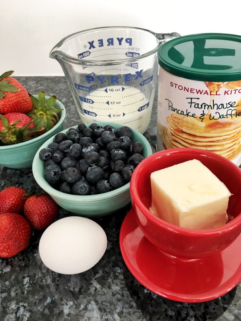 Today I’m trying out a pre-made mix from Stonewall Kitchen called Farmhouse Pancake and Waffle Mix that I picked up over at MilkandEggs.com. The mix is super light and smells like vanilla. Some mixes require you to add water but this one requires an egg, milk and butter which is probably why it tastes so damn good. I really like the versatility of pancakes, you can make big ones, little ones, thin ones, fat ones and the topping options are endless. Oh another idea, a pancake bar where you serve pancakes and then have an endless amount of topping options. Okay, back to the pancakes I’m making today. I put together a pancake platter, topped with blueberries, strawberry roses and a side of Hip Chick Farms Chicken & Apple sausage patties (all from Milk and Eggs) and since it’s the main attraction it’ll go in the center of the table and served family style. I also think it’s always a fabulous idea to add an unexpected element so I added a few rose carved strawberries. I hope the pictures below make you hungry and inspire you to create your own amazing pancake platters.