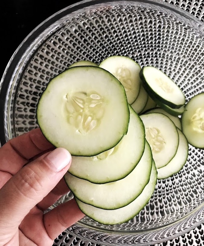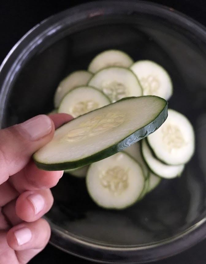 Slice up the cukes. If you leave the skin on make sure to wash the outside really well.