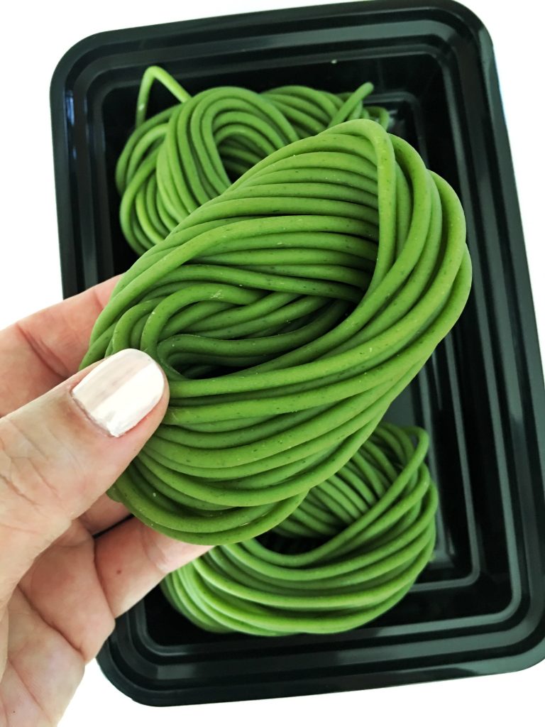 I love creating sauces that are light and flavorful. I received this gorgeous batch of Domenico’s Foods fresh spinach bucatini noodles from Milk and Eggs and wanted to create a sauce that was light, nutty and not made from tomatoes. The first thing that came to mind was to make a mix of brown butter, garlic and roasted nuts. YAAAS! The spinach bucatini is a hearty noodle with a strong spinach flavor so I didn’t want anything to overpower that.