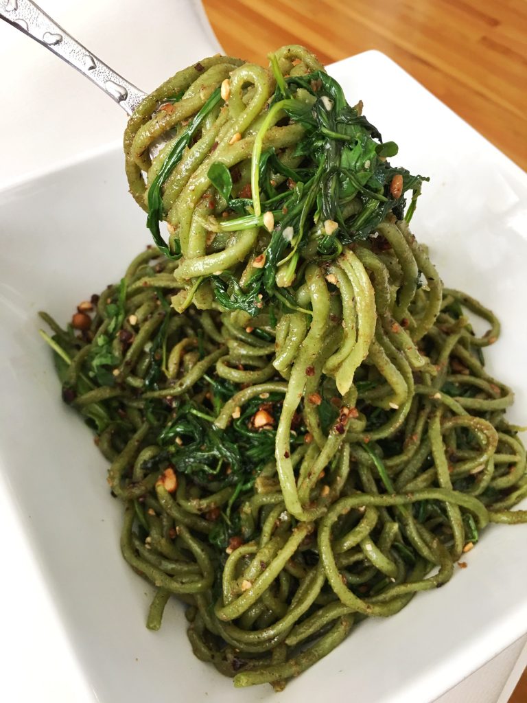 Look at how gorgeous the spinach bucatini is. The brown butter and roasted hazelnuts give it a nice nutty rich flavor. Remember you can do this with any pasta, with any veggies and with any kind of nuts. GO CRAZY! and start cooking.