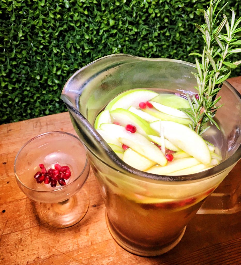 - Combine vodka, apple, pomegranate seeds and rosemary. Let vodka mixture sit in the fridge for 1-5 hours.