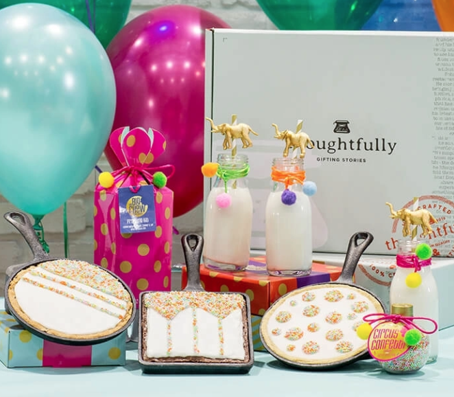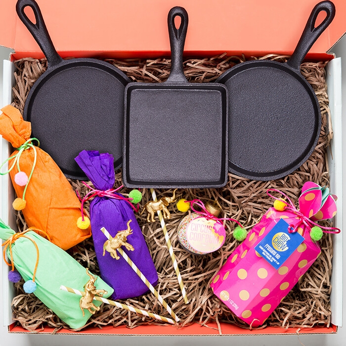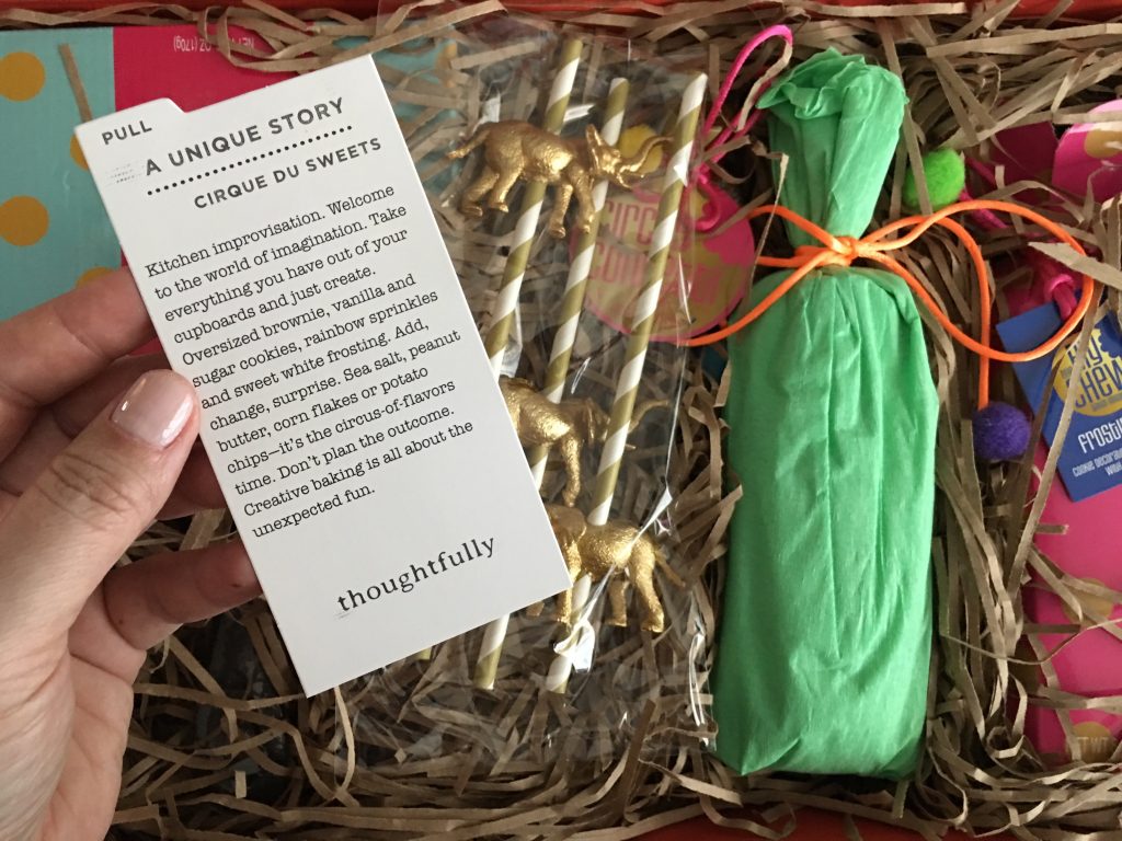 It’s time for a super fun unboxing video. These Thoughtfully gift boxes are hands down the cutest things I’ve seen in a while. It’s really cool to see gifts packaged so well and for there to be so many different themes to choose from whether it’s a special occasion or no occasion at all. Plus they are super affordable! Each carefully crafted gift box comes with a story regarding the contents and seems to encourage creativity. I received a Thoughtfully Gift box called “Cirque Du Sweets” and wanted to share it with you all, so this week’s Chomp On This YouTube video is the unboxing of this gorgeous culinary gift. Next week, we’ll bake what’s inside. NOM NOM!
